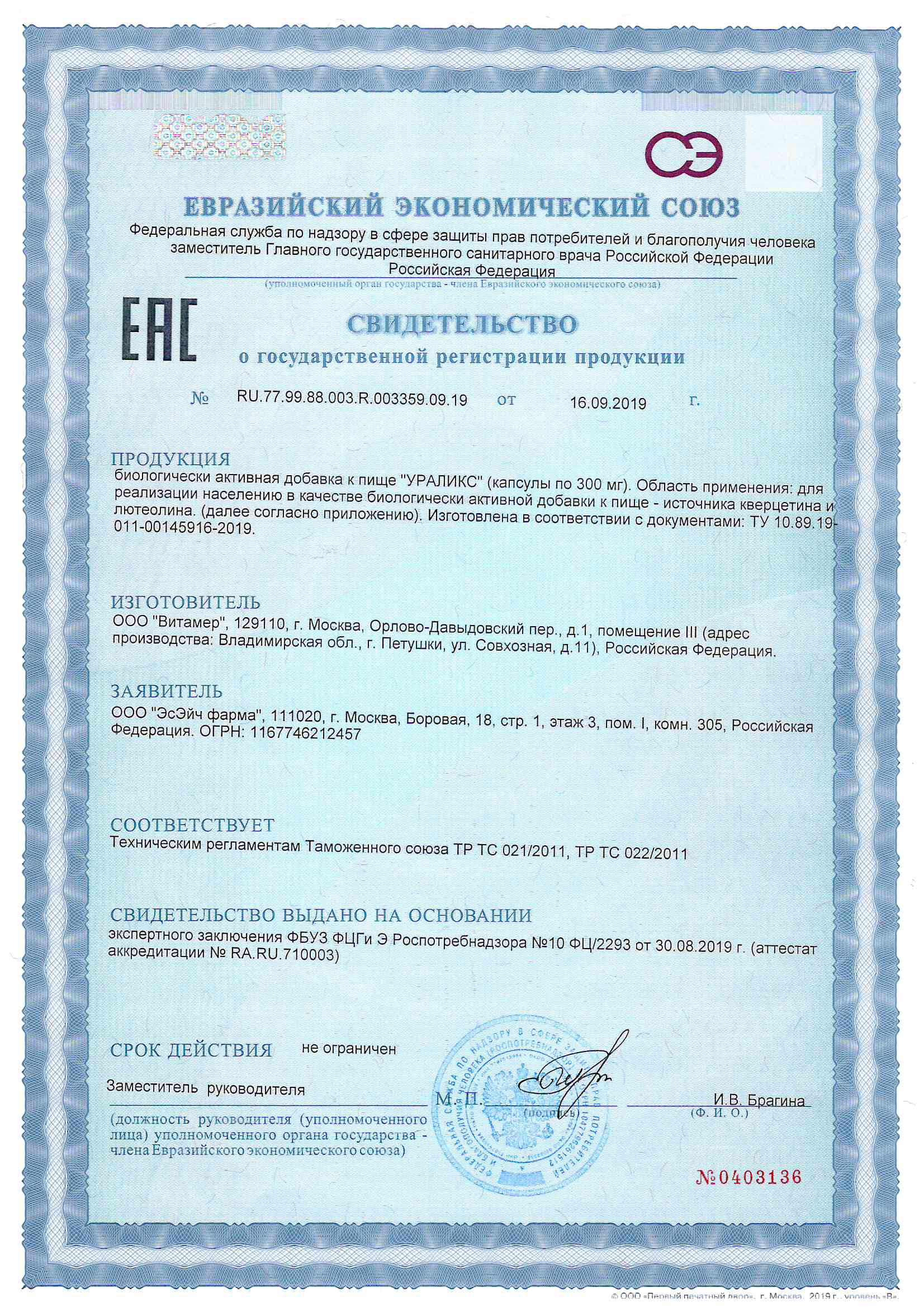 Ураликс одобрен к использованию на территории РФ и ЕАЭС