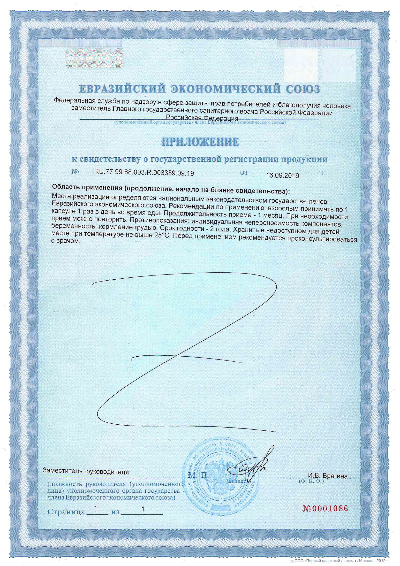 Вспомогательные компоненты: желатин (в составе оболочки капсулы), диоксид титана (краситель в составе оболочки капсулы).